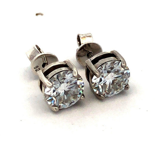 925 Sterling Silver Round Diamond Solitaire Statement Stud Earrings