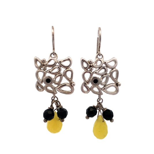 Vintage 925 Sterling Silver Black Onyx Chrysoprase Modernist Dangle Earrings