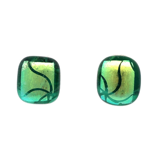 Vintage 925 Sterling Silver Rectangle Green Resin Star Foil Stud Earrings