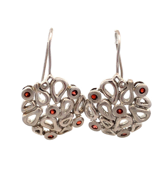 Designer 925 Sterling Silver Round Garnet Modernist Hook Dangle Earrings