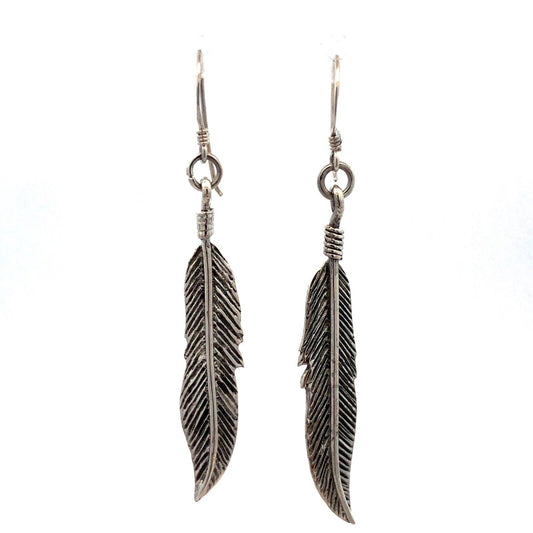 Vintage 925 Sterling Silver Feather Textured Drop Dangle Hook Earrings