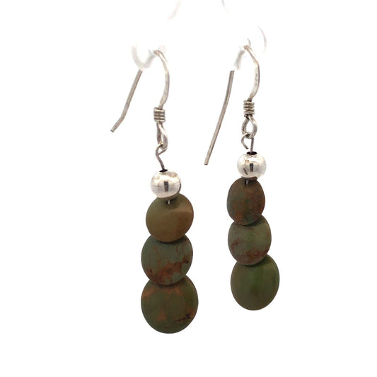 925 Sterling Silver Round Green Turquoise Disc Trio Dangle Hook Earrings