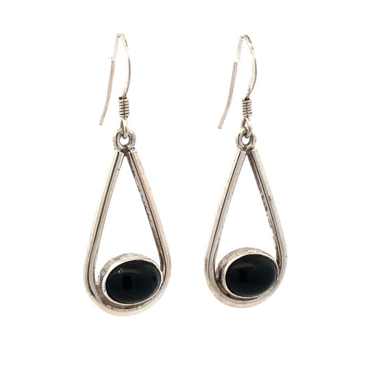 Native American RLH 925 Sterling Silver Oval Black Onyx Hook Dangle Earrings