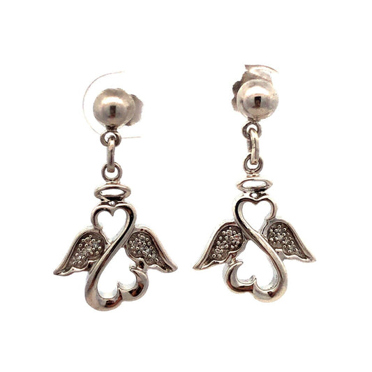 Designer JWBR 925 Sterling Silver Diamond Heart Angel Infinity Dangle Earrings