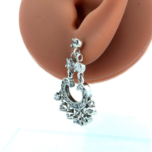 Vintage 925 Sterling Silver Round Cubic Zirconia CZ Chandelier Dangle Earrings