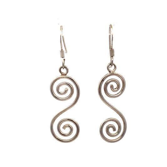925 Sterling Silver Estate Modernist Double Swirl Dangle Hook Earrings