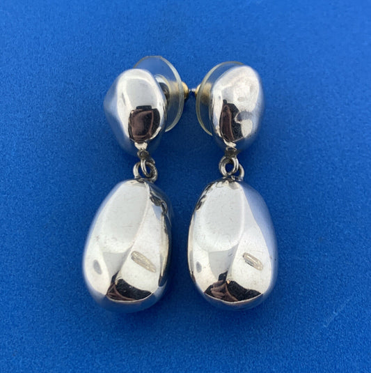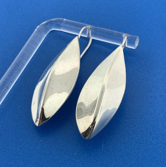 Taxco Mexican Designer CII Sterling Silver 925 Thick 3 Sided Leaf Drop Earrings