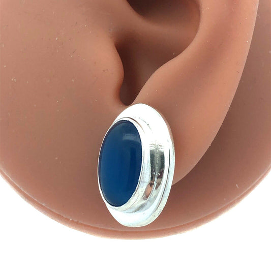 Vintage Taxco Mexico 925 Sterling Silver Oval Blue Tourmaline Stud Earrings