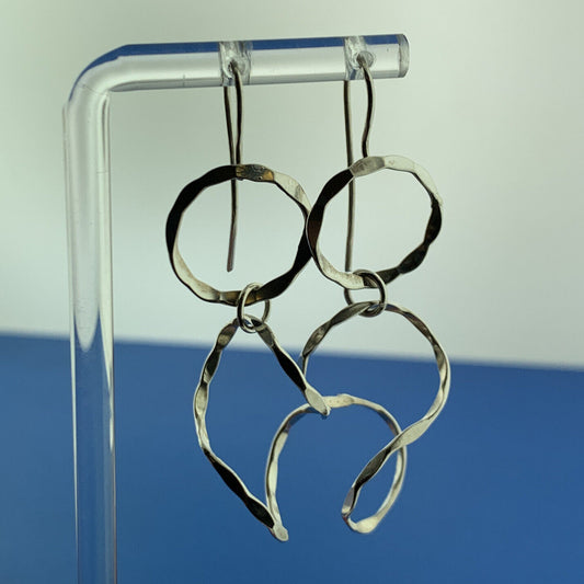 Designer Fiola 925 Sterling Silver Hammered Modernist Twist Dangle Drop Earrings