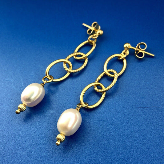 Italy Sterling Silver Vermeil Modernist Polished Twist Pearl Dangle Earrings