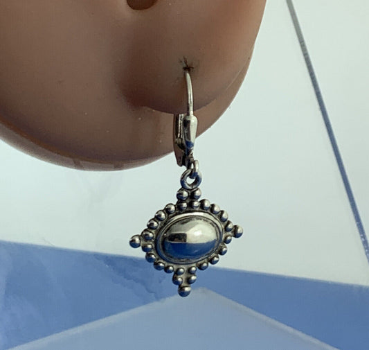 Designer Vintage 925 Sterling Silver Bead Work Lever Back Dangle Drop Earrings
