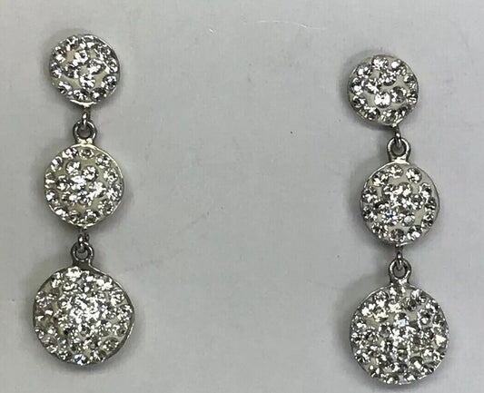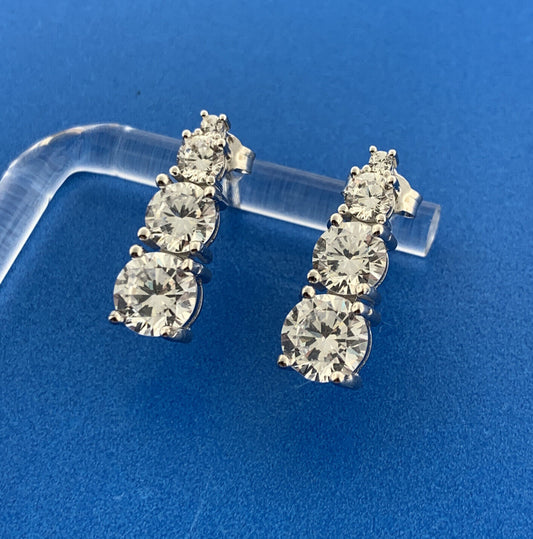 Retro Sterling Silver Cubic Zirconia Triple Drop Wedding Bridal Earrings