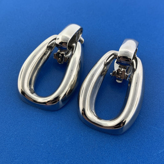 Designer ATI Sterling Silver 925 Open Oval Link Dangle Clip-On Earrings