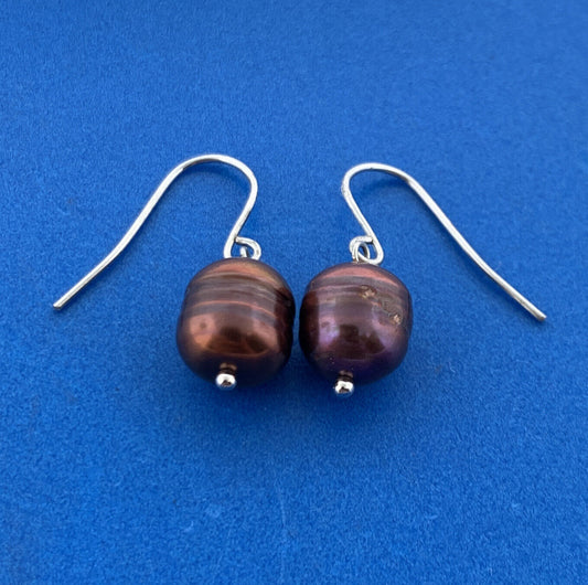 Designer Honora Sterling Silver 925 Iridescent Black Pearl Dangle Hook Earrings