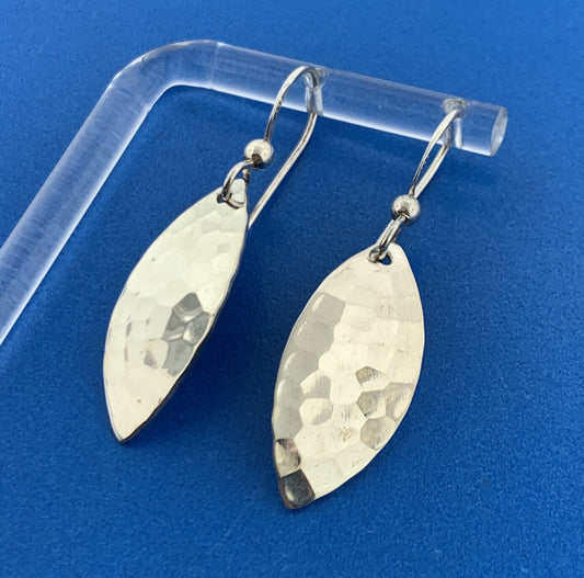 Stunning Sterling Silver 925 Textured Marquise Leaf Hook Dangle Earrings