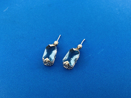 Sterling Silver Rectangle Blue Topaz Bead Scroll Work Statement Drop Earrings