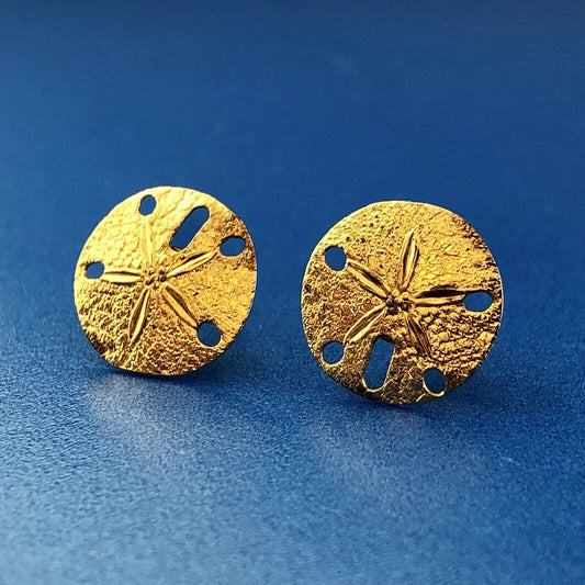 Sterling Silver Vermeil 925 Sand Dollar Sea Ocean Paradise Stud Earrings