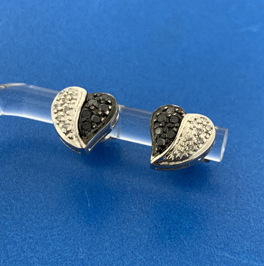Designer HN 925 Sterling Silver White Black Diamond Cluster Heart Stud Earrings