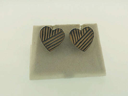 Retired Mignon Faget 14K Yellow Gold Sterling Silver Hard Hearts Stud Earrings