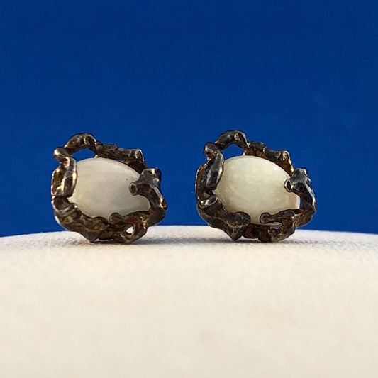 Native American Artisan Sterling Silver 14K Gold Opal Free Form Stud Earrings