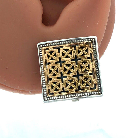 925 Sterling Silver 18K Yellow Gold Designer Floral Square Clip On Stud Earrings