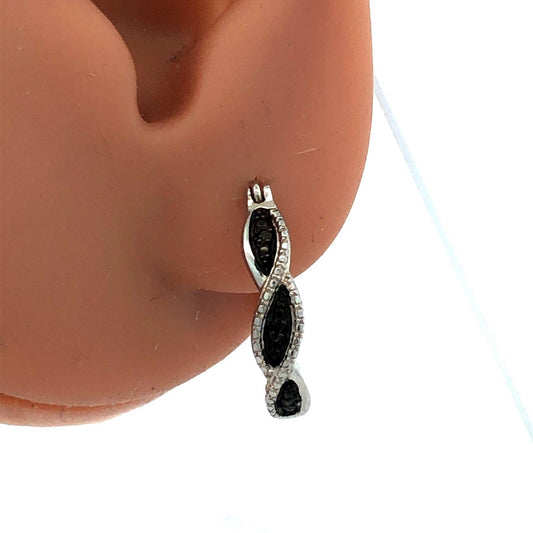 Designer 925 Sterling Silver Black Diamond Round Hoop Earrings