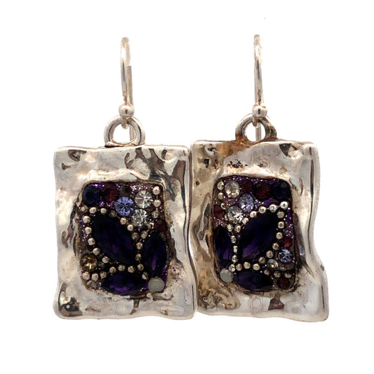 Vintage 925 Sterling Silver Purple Cubic Zirconia Rectangle Hook Earrings