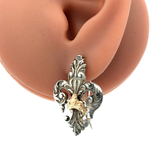925 Sterling Silver 14K Yellow Gold Fleur De Lis Statement Stud Earrings