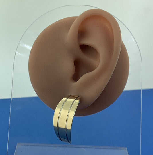 Designer 14K Yellow Gold Sterling Silver Modernist Textured Half Hoop Earrings