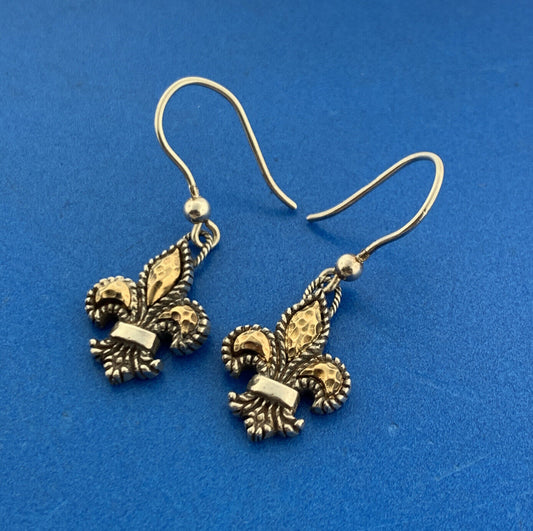 Philip Gavriel 925 Sterling Silver 18K Gold Yellow Fleur De Lis Dangle Earrings