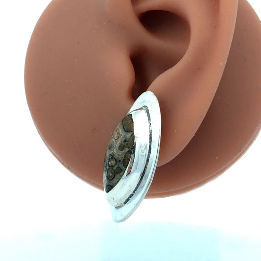 Vintage Mexico 925 Sterling Silver Oval Leopard Skin Jasper Stud Earrings