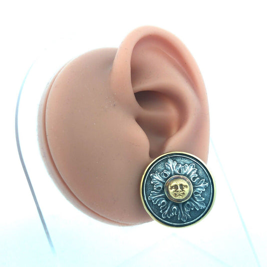 Signed Paul Lantuch 18K Yellow Gold 925 Sterling Silver Mask Disc Earrings