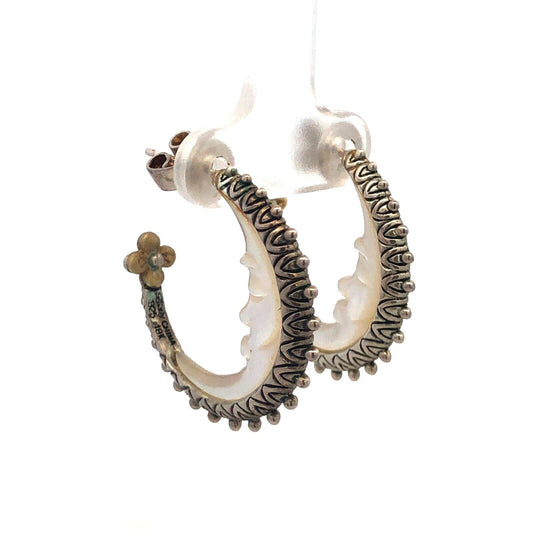 Barbara Bixby Sterling Silver 18K Gold Mother of Pearl Moon Face Hoop Earrings