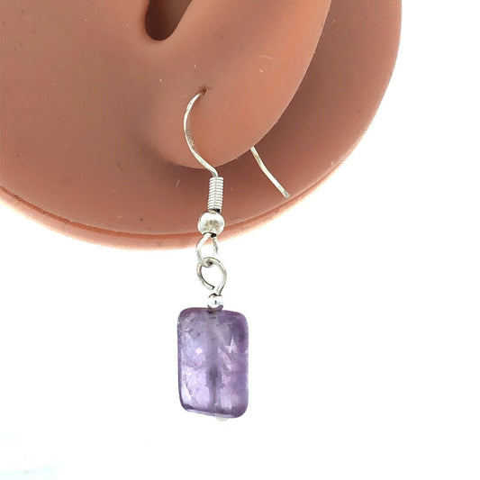 925 Sterling Silver Rectangle Faceted Amethyst Dangle Hook Earrings