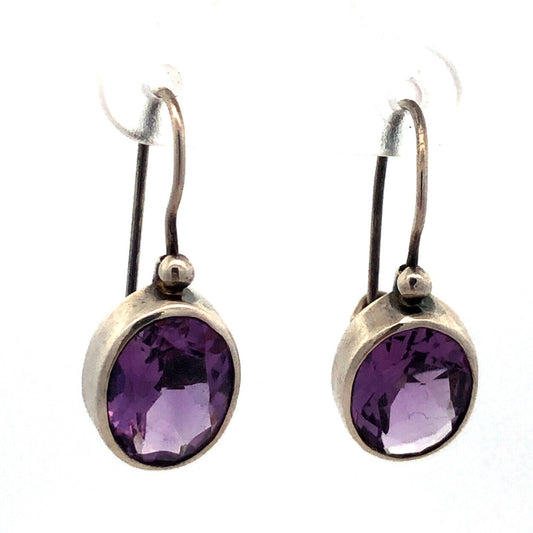 Designer 925 Sterling Silver Oval Purple Amethyst Hook Dangle Earrings