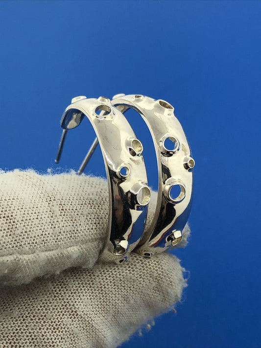 Spectacular 925 Sterling Silver Modernist Moon Crater Open Hoop Earrings