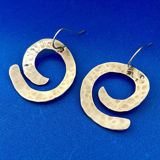 Sterling Silver 925 Hammered Modernist Crop Circle Swirl Dangle Drop Earrings