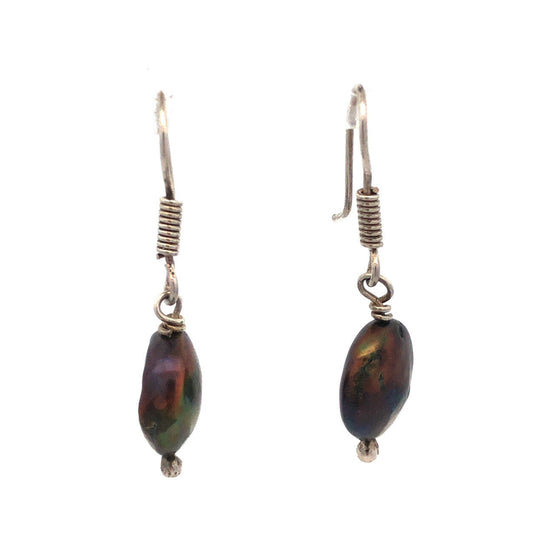 925 Sterling Silver Bronze Baroque Pearl Drop Dangle Hook Earrings