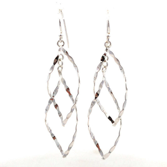 Designer 925 Sterling Silver Hammered Textured Modernist Dangle Earrings