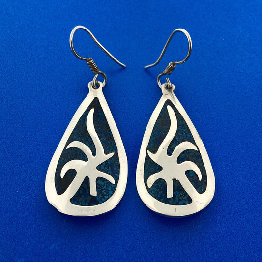 Vintage Taxco Sterling Silver Blue Aqua Enamel Pear Shaped Modernist Earrings