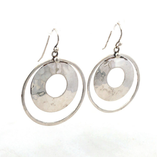 Designer Silpada Sterling Silver Hammered Modernist Round Hook Dangle Earrings
