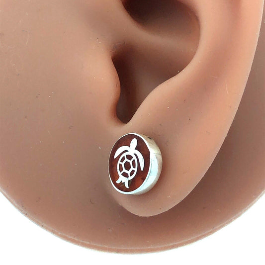 925 Sterling Silver Resin Sea Turtle Tortoise Cutout Round Stud Earrings