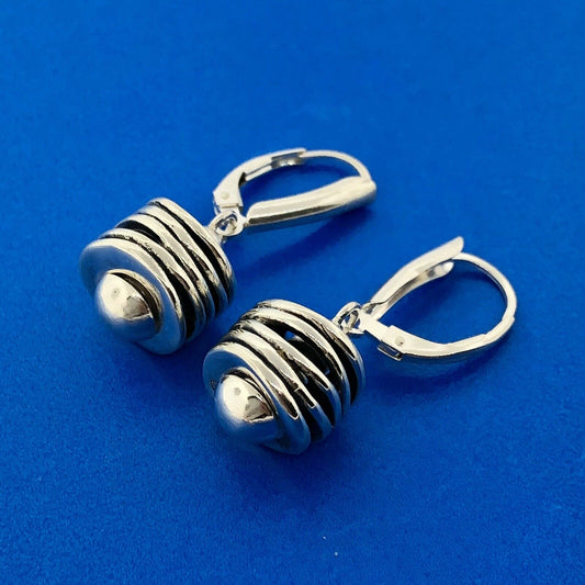 Stunning Sterling Silver 925 Coil Ring Leverback Dangle Earrings