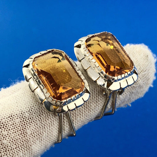Designer 925 Sterling Silver Rectangle Orange Cubic Zirconia Statement Earrings