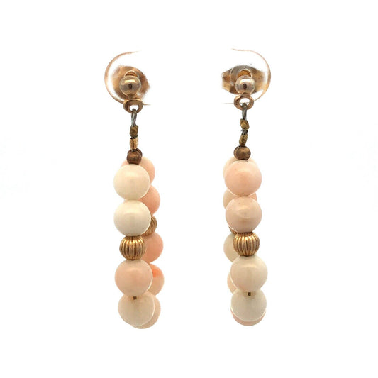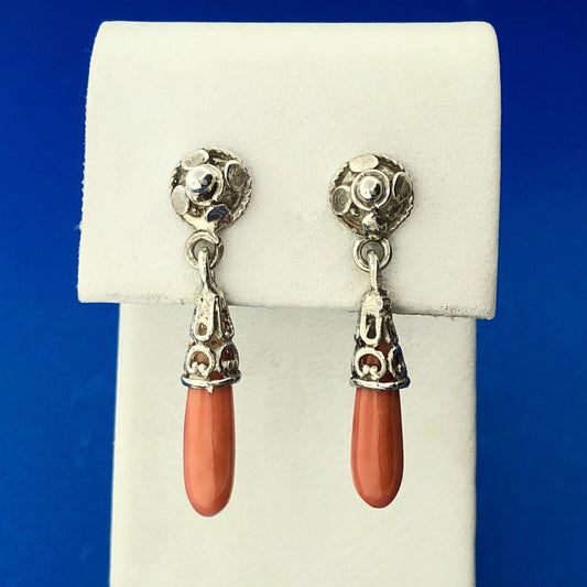 Stunning Sterling Silver 925 Cabochon Elongated Coral Dangle Earrings