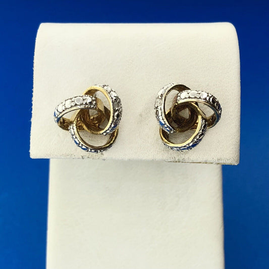 Gold Vermeil Sterling Silver Diamond Triple Interlocked Ring Stud Earrings