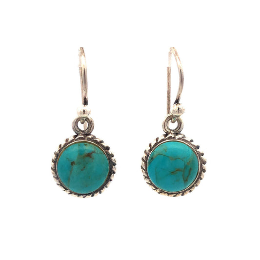 Vintage Barse 925 Sterling Silver Round Turquoise Twist Detail Hook Earrings