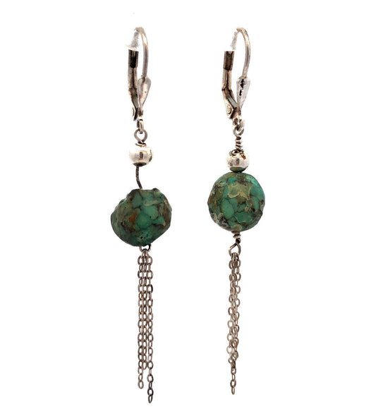 Vintage 925 Sterling Silver Turquoise Chain Dangle Leverback Earrings