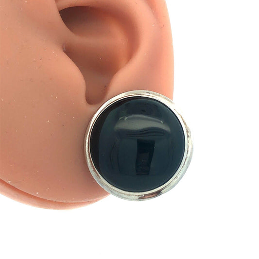 Designer 925 Sterling Silver Round Black Onyx Cabochon Omega Back Earrings