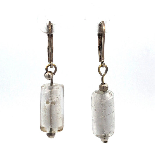 Vintage 925 Sterling Silver Foil Glass Drop Dangle Leverback Earrings